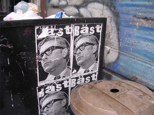 Bäst often appropriates images from pop culture and the news media and, as gallery directors and curators like to say, re-contextualizes these images within the urban landscape.