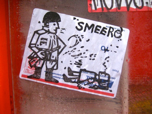 New York City street art: “Smeero” Sharpie illustration sticker, The Bowery.