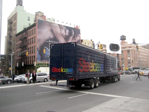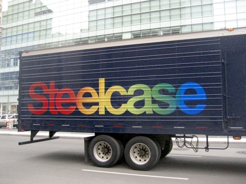 New York Street Art: This Steelcase tractor-trailer truck on Houston Street is an example of a commercial transport vehicle with bold, well-designed and attractive branding.