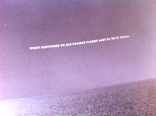 Per the Times mag’s usual standard, the article is presented in a beautiful layout with graphics and images that tell the story. The cover photo – a black and white image of the sea (see below) – is a poignant reminder of the mystery and remoteness of the air disaster and the many unanswered questions that remain.