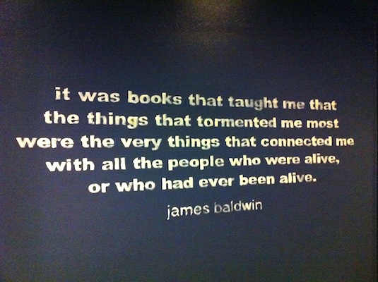 The decor of the bathroom at the McNally-Jackson bookstore in New York City includes a quote by American author James Baldwin painted on the wall.