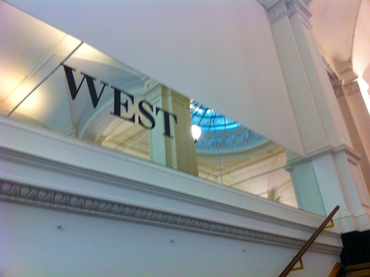 The haunting “West” and “Ost” (“East”) mirrors in the epic grand staircase at the Martin Gropius Bau art museum in Mitte, in Berlin. The museum’s location is on a street that was once the border along which the infamous Berlin Wall ran. The Wall was literally a stone’s throw from the where the “Ost” mirror now hangs.
