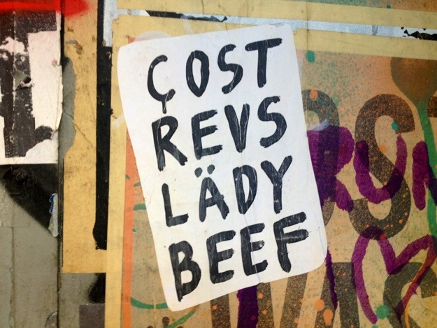 “Cost Revs Lady Beef” … SoHo GG EditorsApril 12, 2013May 18, 2023Street Art Post navigation PreviousNext Share this: Click to share on X (Opens in new window) X Click to share on Facebook (Opens in new window) Facebook Like Loading... Related