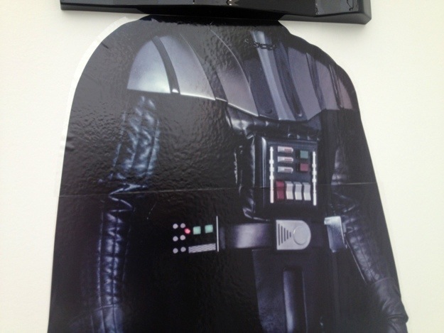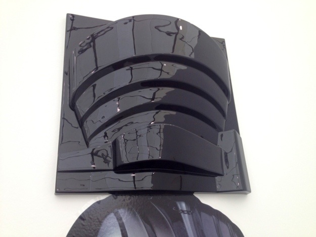 “The Holy Trinity” is an artwork by Jonathan Monk that used an intriguing mash-up of pop culture and art culture imagery. Here the black, shiny helmeted head of Darth Vader, the evil icon of “Star Wars,” is represented by a bas-relief-like representation of the Guggenheim Museum in New York.