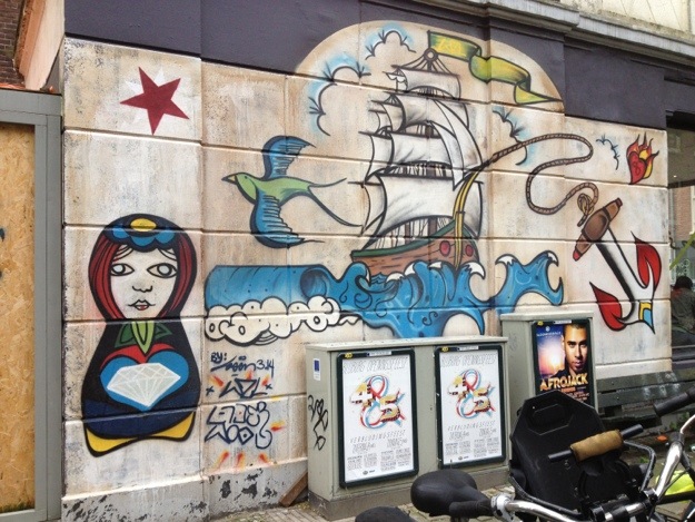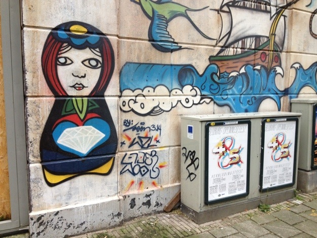 De Pijp is a popular — if overplayed — Amsterdam neighborhood among hipsters, tourists, expats and locals alike. Not that these are mutually exclusive tribes, mind you. It’s home to a huge, famous street market, cool advertising agency offices, great cafes and lots and lots of street art, including these paintings below.