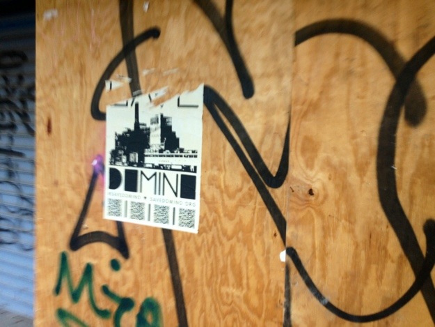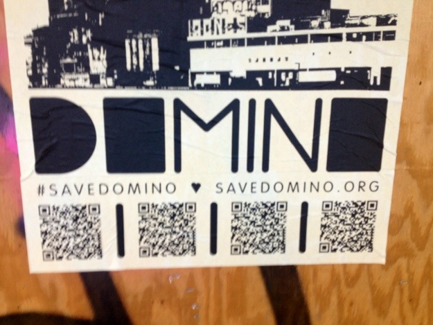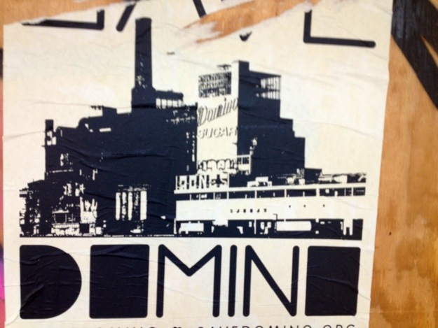 Pix below of some wild postings for the ongoing “Save Domino” campaign, an effort to preserve and — gain landmark building status for — several buildings that are part of the former Domino Sugar factory in Williamsburg, Brooklyn.