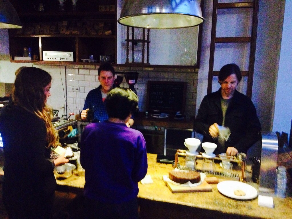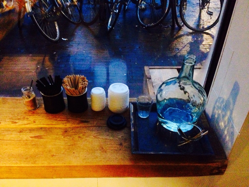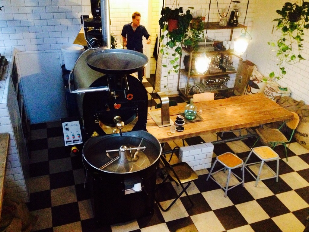 We paid a visit to Lot Sixty One Coffee Roasters’s espresso bar and roastery on Amsterdam’s Kinkerstraat street. Lot 61 was opened in early 2013 by Australian coffee connoissuer and entrepreneur Adam Craig, who used to live in New York City, where he had opened and run the acclaimed Culture Espresso in NYC’s fashion-garment district. (In full disclosure, Adam is an old friend of ours who we’ve known since those NYC days.) In just a few months, Lot 61 has already upped the game in the rapidly growing Amsterdam third-wave coffee scene, as Amsterdam’s coffee lovers increasingly warm to the idea of take-out coffee and the importance of carefully sourced, roasted and brewed beans. The coffee here is first-rate. Check ’em out.