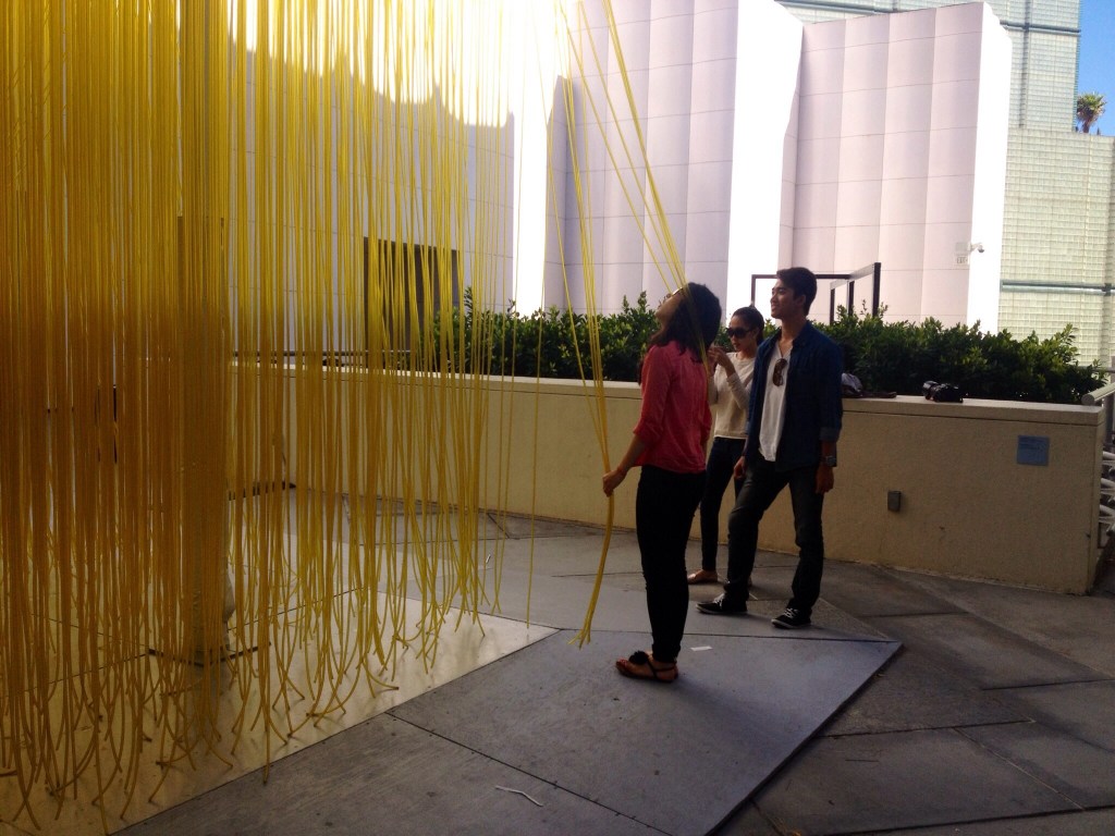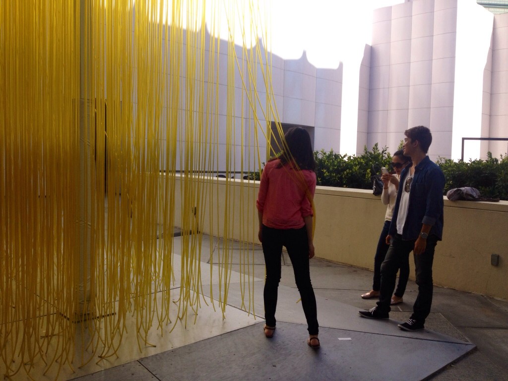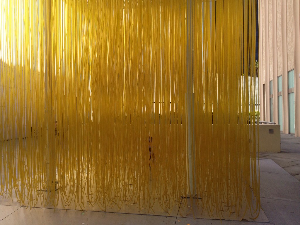 The late Paris-based Venezuelan artist Jesus Raphael Soto made a career of painting, sculpture and optical and kinetic art. It was the last of these for which he’s perhaps best known, such as this interactive, immersive “Penetrable” installed in the plaza in front of the Ahmanson building at the sprawling Los Angeles County Museum of Art, or LACMA.