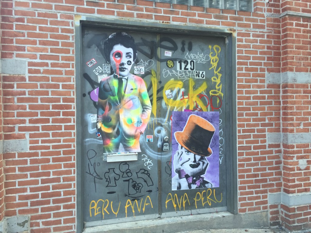 Fresh street art by the artists “Dain” and “Dee Dee” (#deedeewashere) wheat-pasted on double doors on North 7th Street near Bedford Avenue in Williamsburg, Brooklyn. North 7th is a veritable street art gallery. When we’re in Billyburg, we often stop in at Toby’s Estate down the street for coffee and then do a quick cruise down N. 7th towards the East River waterfront looking for fresh artwork.