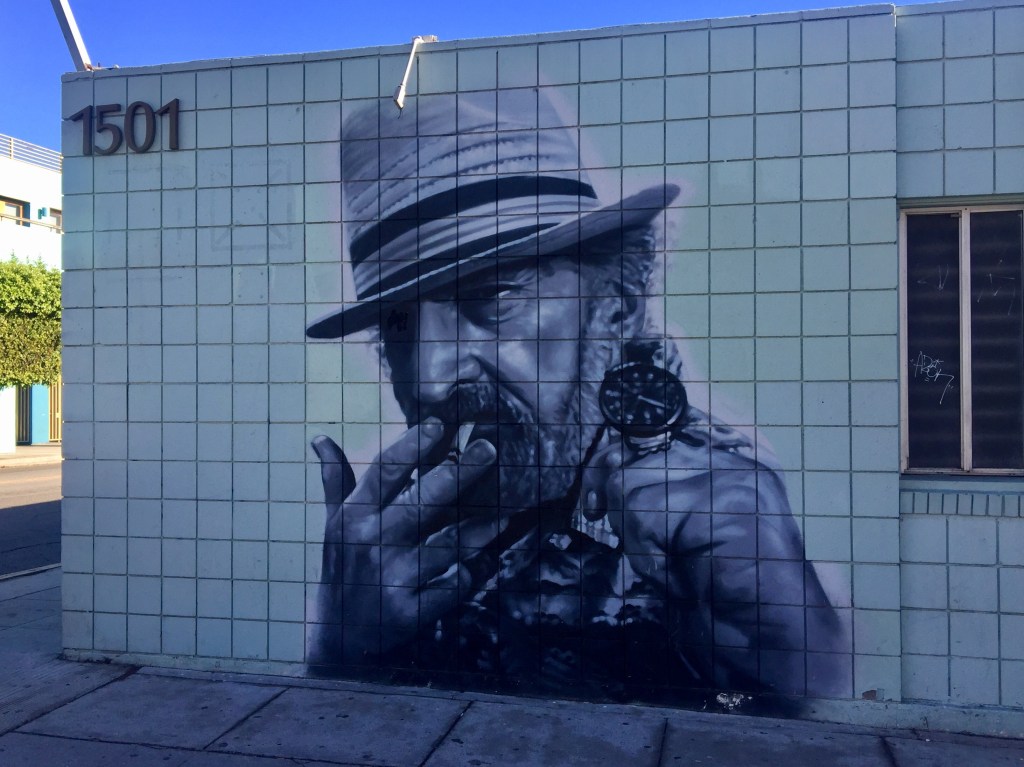 This photo-realistic mural of the late Jack Herer is by artist Brian Garcia (a.k.a., TAZROC). You can find it at 1501 Pacific Avenue in Venice Beach, Los Angeles. Herer was a well-known activist and book author advocating for the legalization of marijuana who was sometimes referred to as “the Emperor of Hemp.” The mural is on a building that at the time it was painted was occupied by the Nile Collective, a cannabis clinic that has since moved to the beach town of Playa del Rey a few miles south.