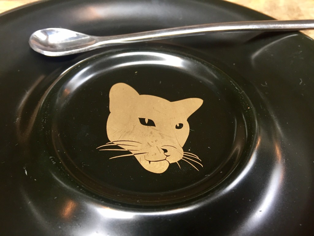 But Intelligentsia has also created some variations of the logo and occasionally, if you’re lucky, you’ll get your coffee served in a black ceramic cup and saucer, where the Black Cat logo is rendered in a lightened gold hue. It’s elegant its knocked-out contrast to the black ceramic.