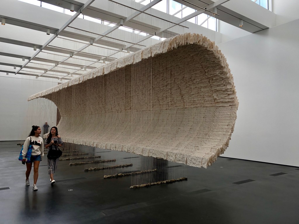 Chinese artist Zhu Jinshi’s massive art installation at the Los Angeles County Museum of Art (or LACMA) is a giant, imposing, vanilla-tinted wave.