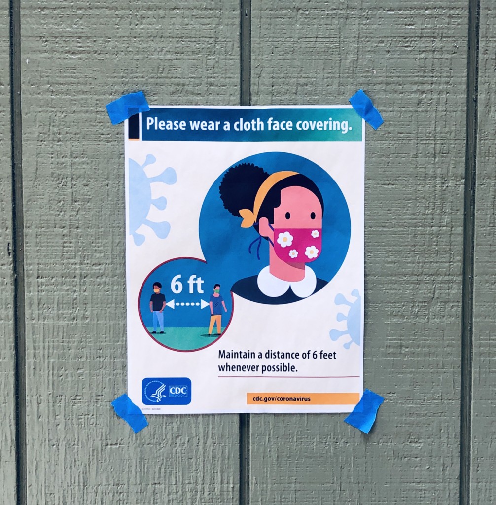This new U.S. Center for Disease Control (CDC) coronavirus poster uses a cute illustration style to graphically communicate its two main instructions for individuals to prevent spread of the virus that causes COVID-19. We saw these posters today in a private park at the head of a series of hiking trails in Santa Barbara, California. Around us, about 30-percent of people were wearing masks and lot of people with legally off-leash dogs and small children were crowding around a lawn area that made it difficult to stay six feet apart. Insert shrug emoji here.