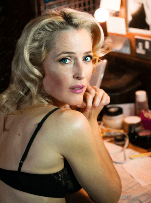 The book is titled “Time to Act.” Some examples are posted here. Pictured above is Gillan Anderson of the X-Files fame in her dressing in London while starring in a theatrical run of “Street Car Named Desire.” Below is Elisabeth Moss of Mad Men while appearing in the London production “The Children’s Hour.”