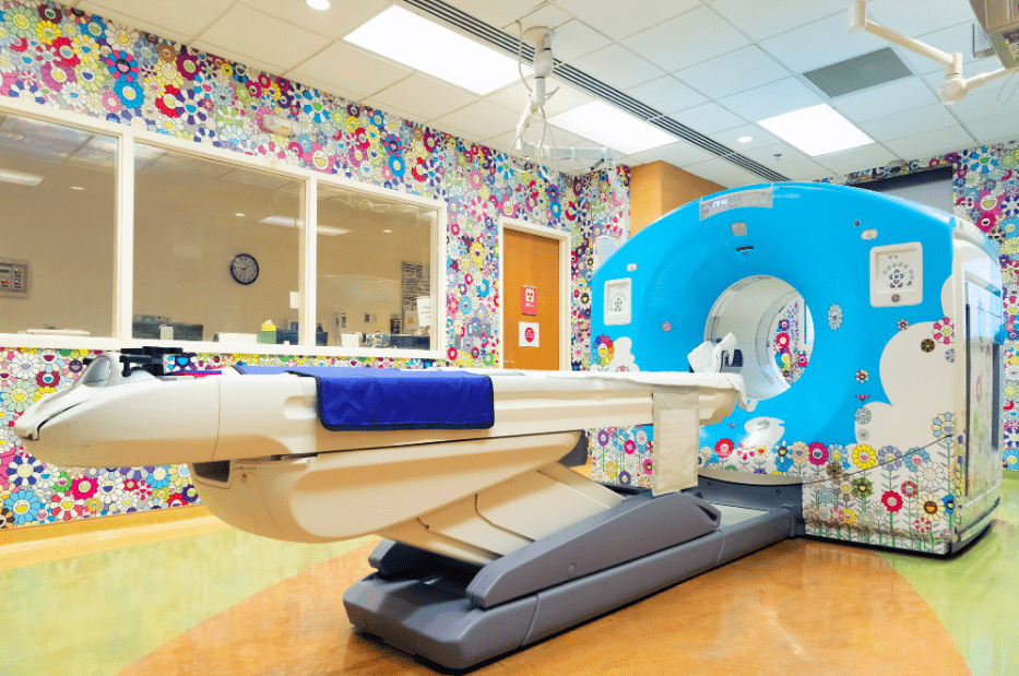 Mega-superstar Japanese artist Takashi Murakami recently decorated part of the Children’s National Hospital in Washington, D.C., with his iconic cartoon-like flowers. The project was commissioned by the non-profit organization RXArt, which collaborates with artists to create artwork for children’s healthcare facilities. It’s a great initiative to bring colorful, uplifting contemporary art to spaces that otherwise feel cold, austere and dull, if not intimidating, especially for children. Murakami’s artwork is visually cheery and completely inhabits a CT scanning room at the hospital. We love this.