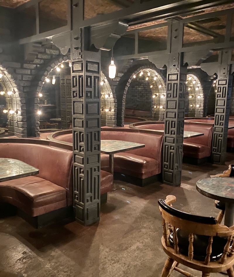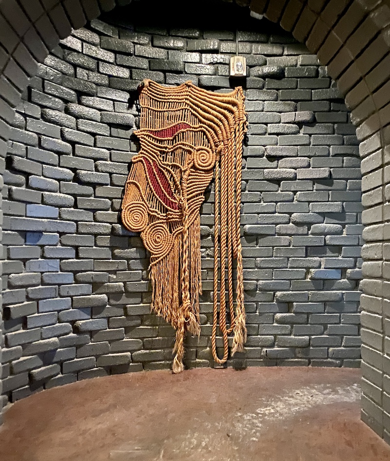 The bar is small and sexy. It has all the local southwestern interior and architectural design flourishes of a previous era. The brick walls are painted black. In an alcove a large Native American-inspired macrame art piece in the form of a face in profile prominently hangs on the wall. The lights are low, but not too low. There are leather-cushioned edges on the bar and semi-circular leather-backed booths. The Amigo Room evokes the golden age of Hollywood, of stars and starlets on weekend getaways, of sweaty, alcoholic nights at the bar and hungover afternoons napping poolside in the desert heat. The only thing missing is cigarette smoke. The bar serves as an unmarked back passage to the hotel’s massive and very contemporary pool, and it feels semi-secretive. You have to look for it. You don’t stumble into it.