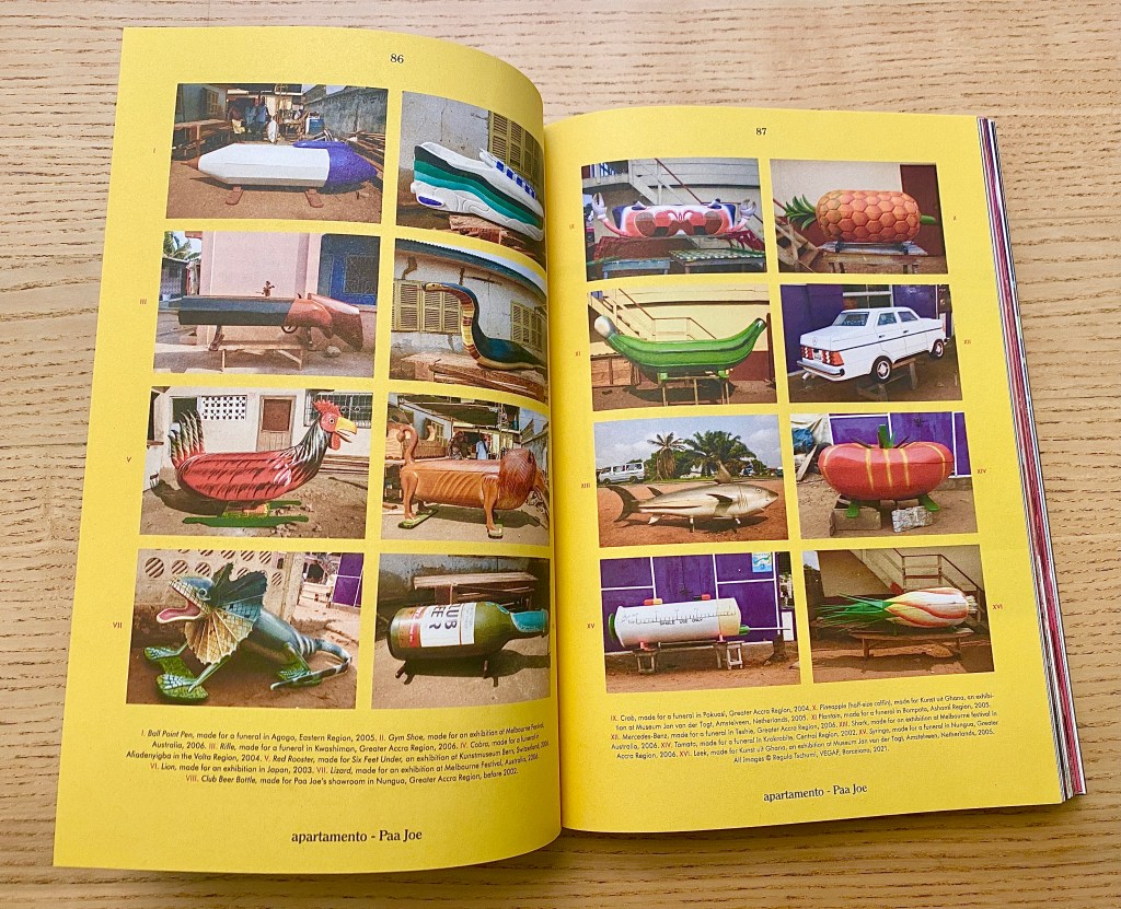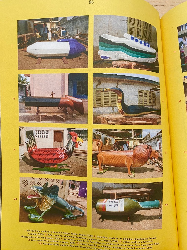 Among the highlight for us has been an interview with a Ghanaian coffin-builder and artist named Paa Jo. Following tradition, he makes custom-made coffins in the shape of beloved animals or objects that were meaningful for the deceased person. His work is pretty amazing.