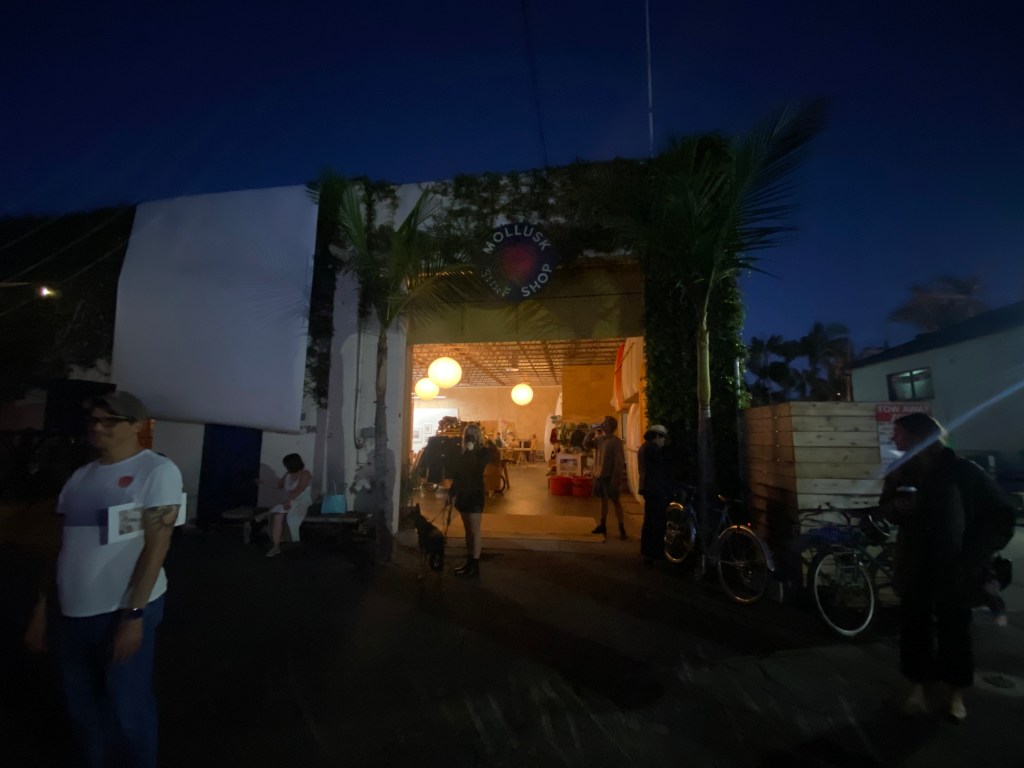 Mollusk has used this space to create a warm, stylish retail and event space filled with surfboards and all the usual various surfy apparel and accessories. But the space is big enough to host events, music performances, film screenings and parties in the parking lot and art and photography exhibitions in a small side gallery space.