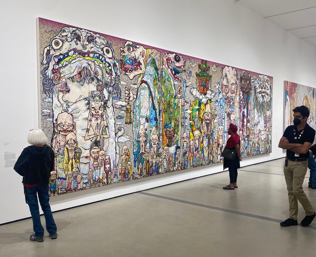 The exhibition is titled “In the Land of the Dead, Stepping on the Tail of a Rainbow,” and it’s big survey, but not huge. It does feel slightly smaller than what we would have expected for a retrospective of an artist of Murakami’s global stature and importance. A collection of some of his most important and iconic artworks are already part of the Broad’s permanent collection, amounting to a set of crown jewels for the museum, many included in this show.