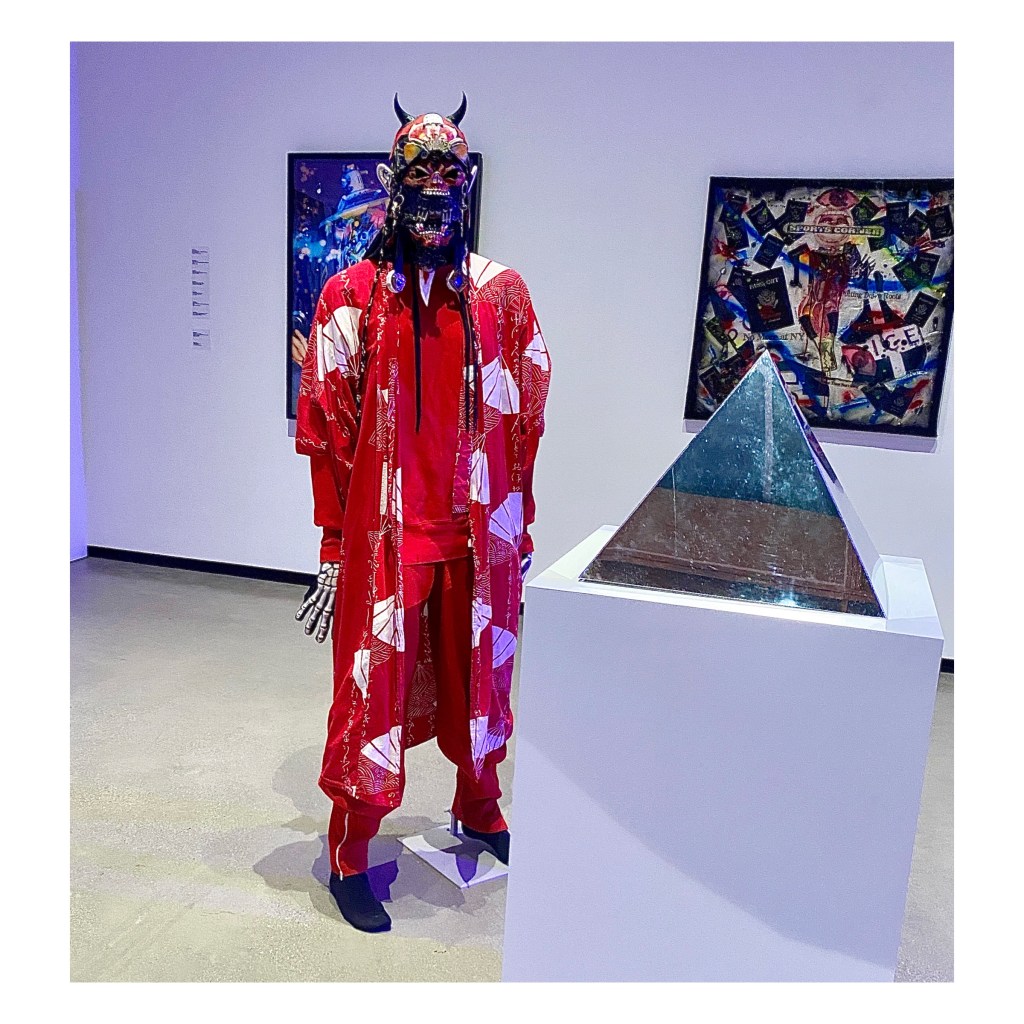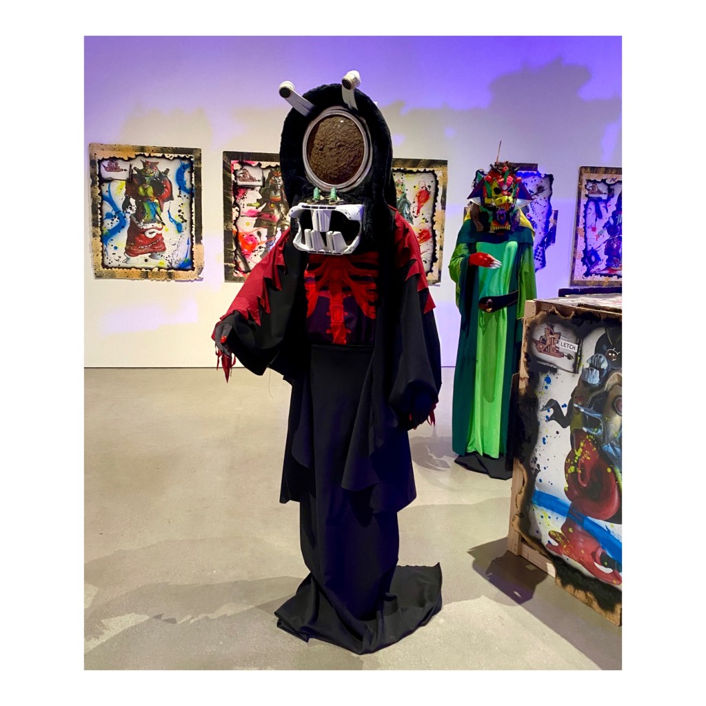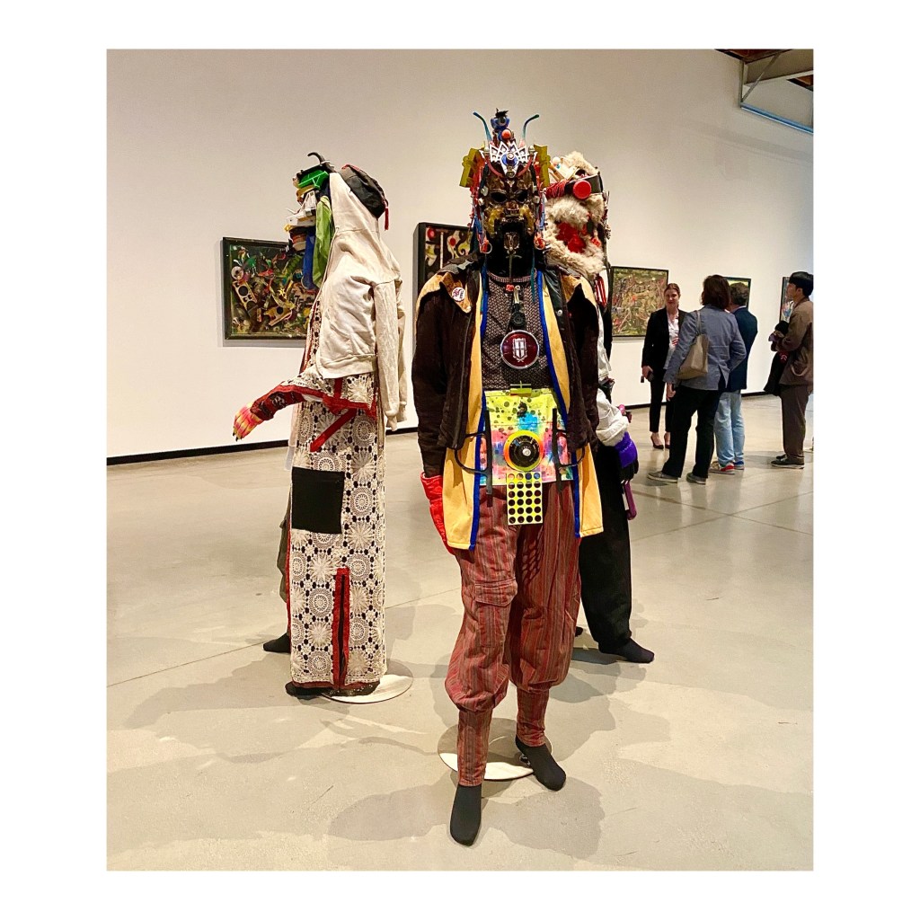 There are elements in these sculptures of Native American, African and Asian indigenous clothing, streetwear and skatewear, Mexican wrestling, drag culture, technology, science fiction, cyborgs, hip-hop, fantasy, Medieval European mythology, and Japanese anime, to name a handful of influences.