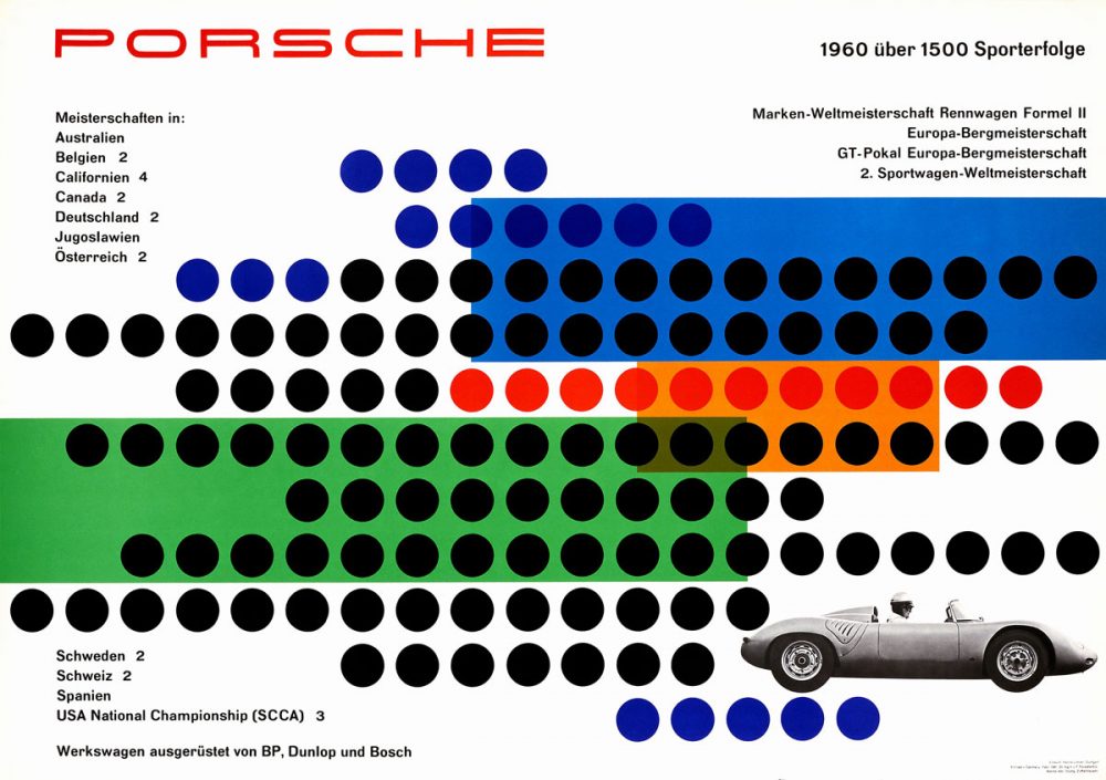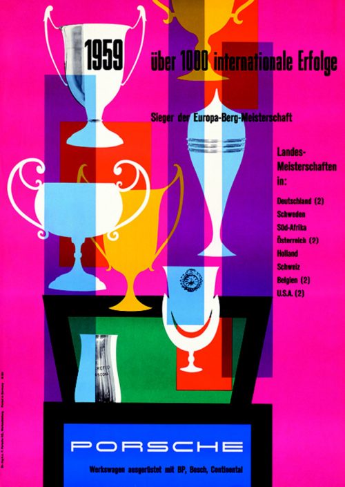 In the 1950s and ’60s, Lohrer defined the branding and visual identity of Porsche, creating a bold, exciting look in its commercial advertising and media. He combined colorful graphics and black-and-white photography to achieve this in a way that was bracing and aesthetically fresh for the time, using radical layouts that departed from the staid advertising conventions of the era.