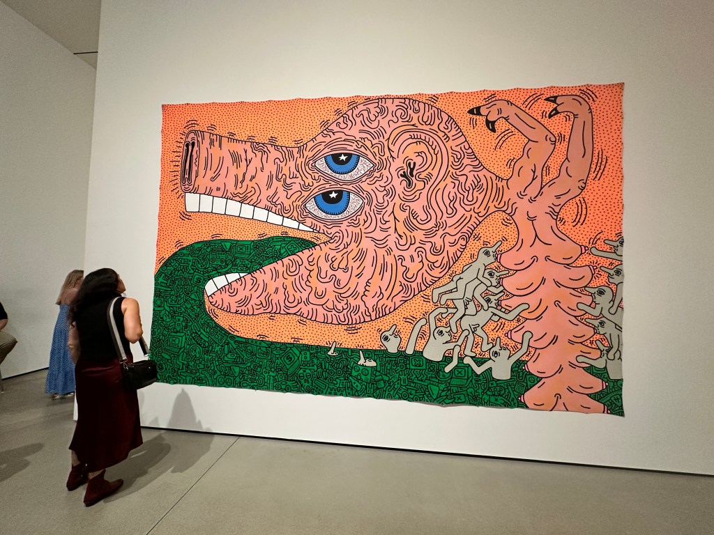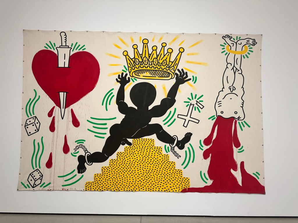 It covers the artist’s career from his early days of creating illicit graffiti art in the New York City subway system to his rise into a pop-art superstar doing epic downtown murals and public artworks. It’s filled with work from the 1980s, Haring’s most prolific and fertile period. The show is excellently curated and absolutely first-rate.