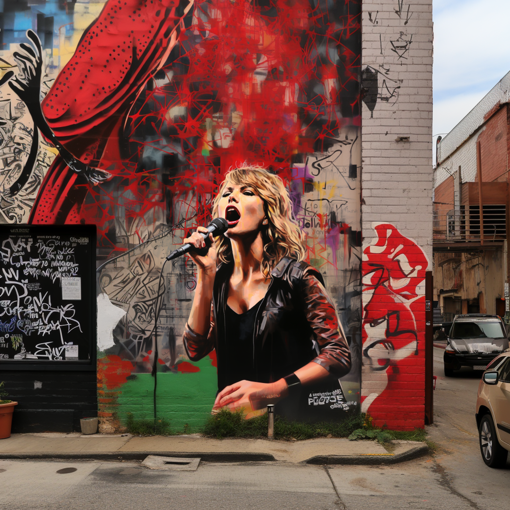 But an “Anonymous” artist has recently explored what Taylor Swift street art might look like around the world using generative A.I. tools to create fake murals of her. The results are pretty damn good. See the “photos” above and below.