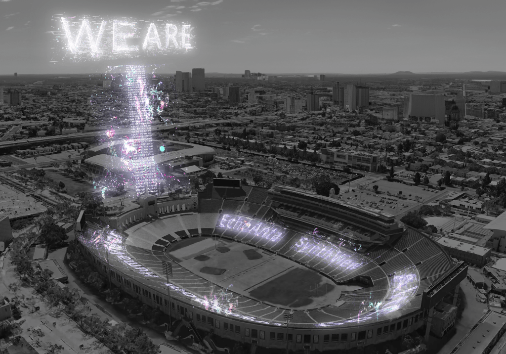 Cai Guo-Qiang, best known for his gunpowder drawings and large-scale explosion events—including the awe-inspiring pyrotechnics at the 2008 Beijing Olympics—brought his unique blend of beauty and chaos to the Los Angeles Memorial Coliseum. “WE ARE” aimed to probe humanity’s complex relationship with artificial intelligence, infused with the artist’s characteristic flair for the dramatic and the unpredictable.