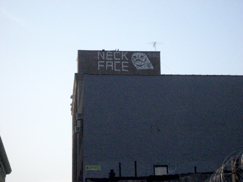 The infamous Neckface in a classic rooftop tag atop a building in DUMBO (Down Under the Manhattan Bridge) neighborhood of … More