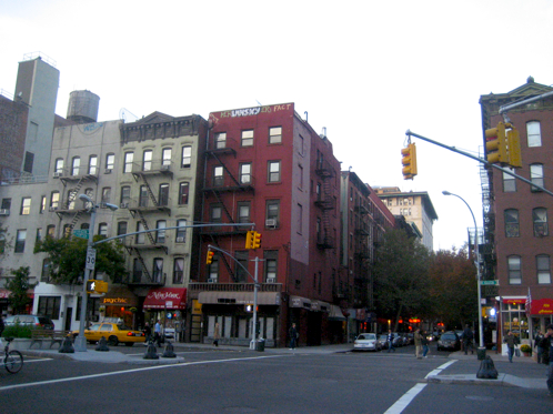 New York street art: Sky graff (big “Lansky” tag near the top of the tenement building) in the heart of … More